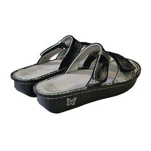 Alegria By PG Lite Karmen Pewter Wavy Leather Platform Slide Sandal Size EU 40