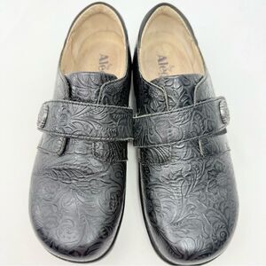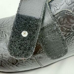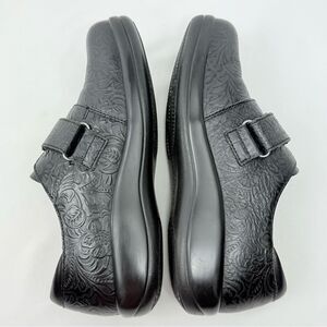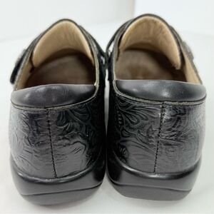 Alegria JOLEEN Black Tooled Floral Leather Slip On Adjustable Strap Support Clog