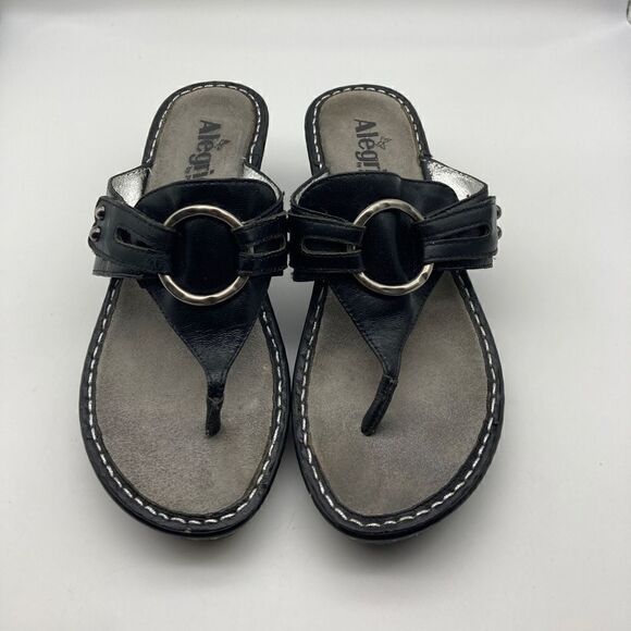 Alegria LOL-601 Black Leather Wedge Sandals Size 38-7,5