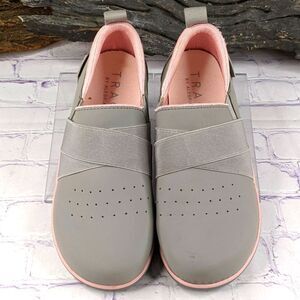 A vegan slip-on detailed with bold crisscross elastic bands on the vamp and side quarters. A touch of padding at the heel helps cushion the ankle at every step, while a removable cushioned footbed and lightweight slip-resistant sport rocker outsole keep the comfort going.