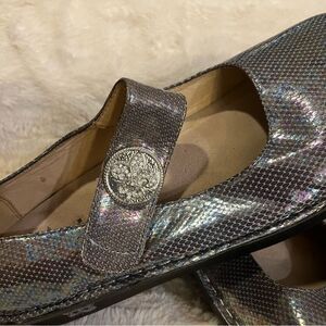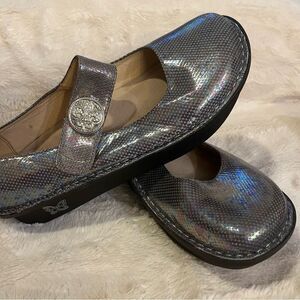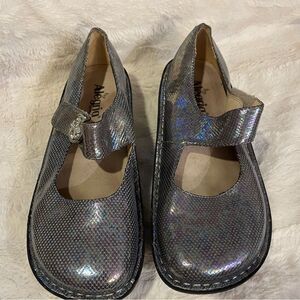 Chic loafers with a shimmering silver design. Features a decorative buckle. Perfect for everyday wear.