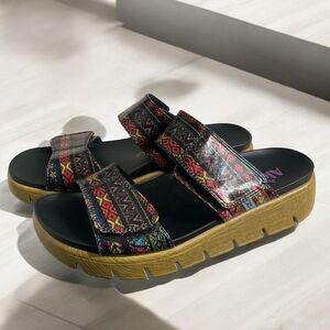 This Alegria Two Band Slide Sandals Womens 7,5(37) Low Platform Boho Southwestern