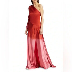 Alejandra Alonso Rojas Dip-Dye Silk One-Shoulder Asymmetrical Gown with/ Train
