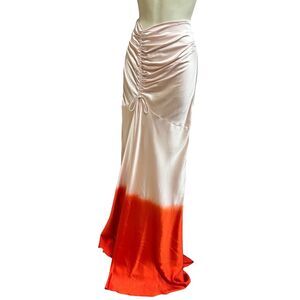 Alejandra Alonso Rojas Ruched Dip-Dyed Satin Maxi Skirt in Pink NWT Size 2