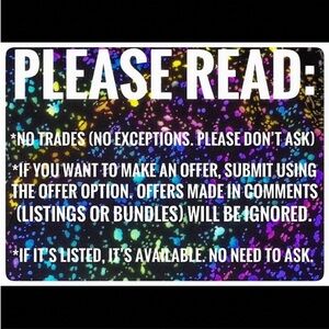 NO TRADES. If item is listed, it is available. Please submit offers using the offer button. Offers in comments will be ignored. Making comments on the price will result in member being blocked.