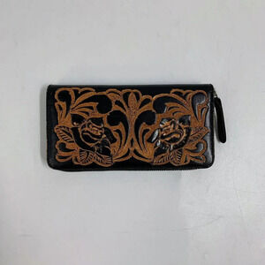 Alejandro Yeo Women's Hand-Tooled Leather Zippered Clutch Wallet