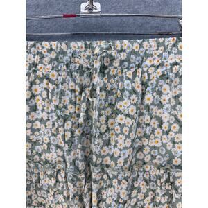 Alelly Woman’s sz L Daisy Print Green Mini Skirt Rayon Cotton Drawstring Beach