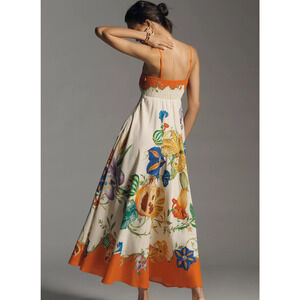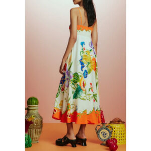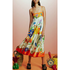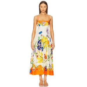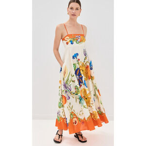 Alemais Flores Square-Neck Linen Midi Sundress US 6