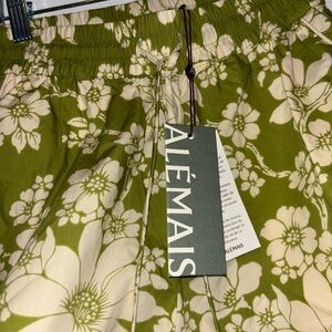 ALEMAIS "Leisa" two-tone floral-print shorts with contrast binding at sides and hem Elasticated waist with ties Flat front; high rise Side slash pockets Relaxed, wide-leg fit Organic cotton Imported.