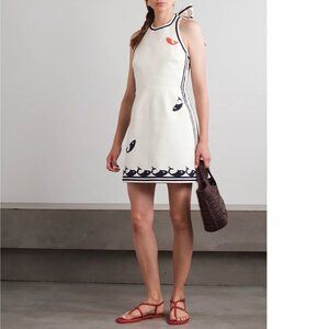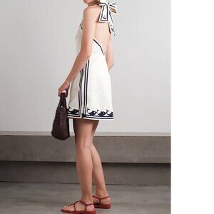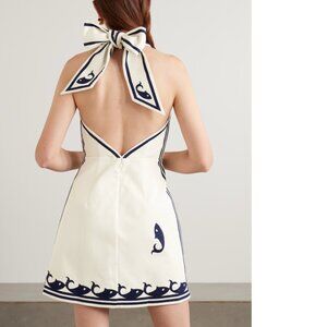 Alemais Marine embroidered printed organic cotton halterneck mini dress