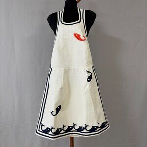 The Alemais dress is made of organic cotton and features a loose silhouette and embroidered fish motifs and nautical stripes. If your hair is longer, you can wear it up and tie the suspenders into a large bow.