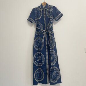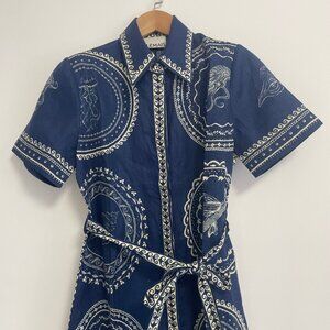 The Alemais Oceane Linen Shirtdress features the unique details you love from this designer. This shirtdress is crafted in an ocean inspired linen with a straight silhouette for every day wear. We love it paired with sandals and a shoulder bag.