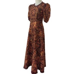 Alémais' 'Seraphina' dress has a '70s spirit that works year-round thanks to its swirling florals and earthy palette. Made from breathable linen, it has a floaty frame anchored by puffed sleeves. Style yours with gold jewelry.