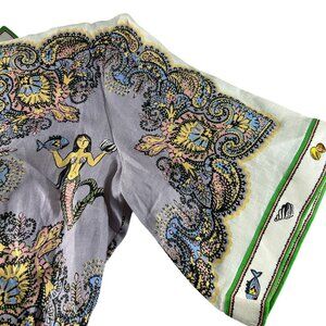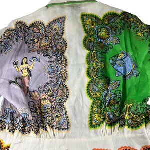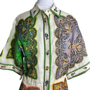 Alemais Womens Size 6 Linen Mini Dress Tropical Mermaid Fish Button Front