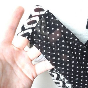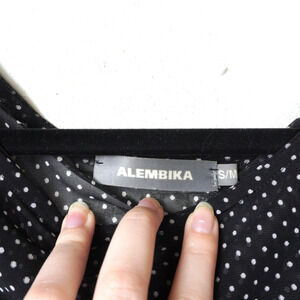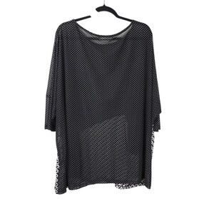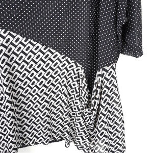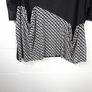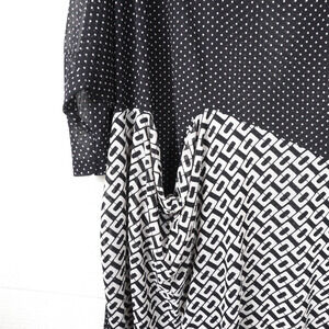 This is an Alembika AB4 tunic top with mixed media patterns, contrasting black and white colorway, oversized pockets at front and asymmetrical hem at waist. This is in excellent pre-owned condition, there is one spot shown in the last photo, where some of the stitching at the hem has come undone. Alembika is oversized on purpose, that is part of the look, but measurements are below to ensure you are comfortable.