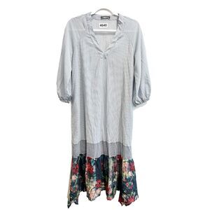 Alembika Alyssa Blue White Midi Dress 6-8 Pinstripe Floral Hem V Neck Flora NWOT