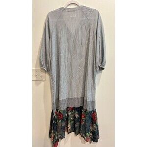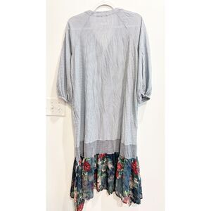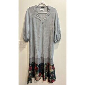 Alembika Womens Blue White Midi Dress Size XS, US 6-8 Pinstriped Floral Hem V Neck 3/4 Sleeve