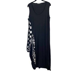 Alembika Black & White Polka Dot Artsy Maxi Dress Lagenlook - Size 4 (US 12-14)