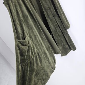 Alembika Cardigan Sweater Olive Green Velvet Velour Open Front Longline Size 1