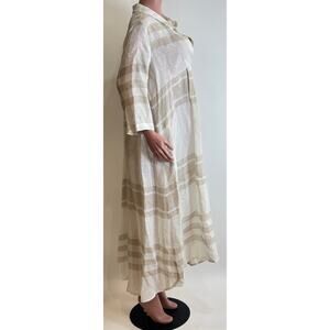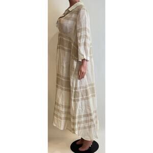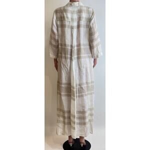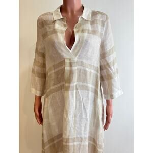 Alembika Linen Tunic Maxi Dress Womens 2 /M Beige Plaid Relaxed Fit Lagenlook