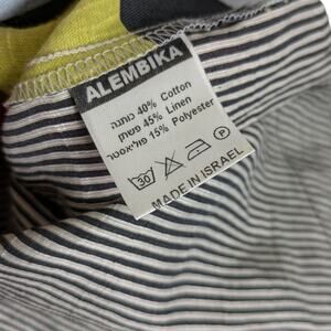 Alembika Mixed Print Media Striped Linen Top Small Multicolor Lagenlook Artsy