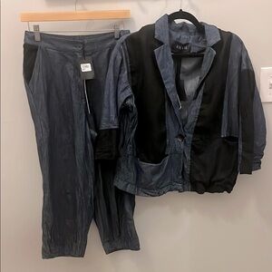 Alembika Ozai N Ku Jacket & Cropped Pants Set NWT Blue Denim Chambray Size XS