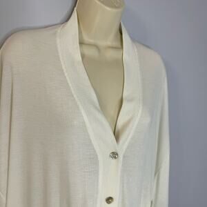 Alembika Ribbed Cardigan V Neck Lightweight 3/4 Sleeve White Relaxed Fit M