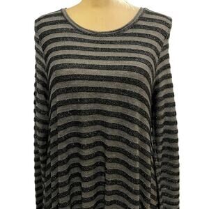 Alembika Silver Striped Boho Dress Grey Black Medium Lagenlook Artsy Avant Garde