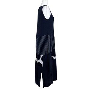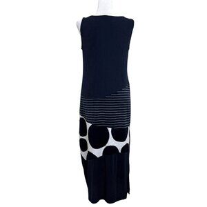 Alembika Sleeveless Maxi Dress Striped Polka Dot Navy Blue Lagenlook Size 10-12