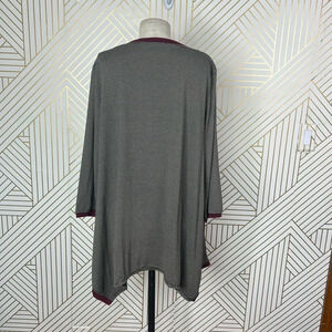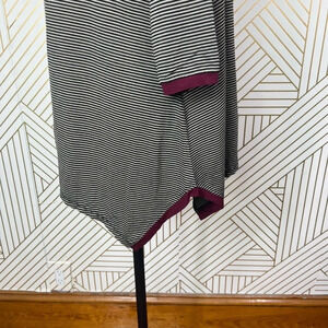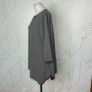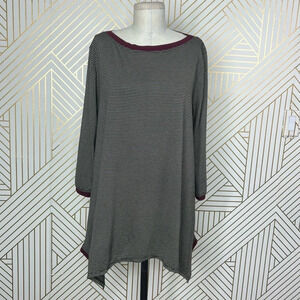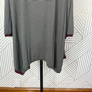 Alembika Striped Tunic Top in Black and Tan with Maroon Trim