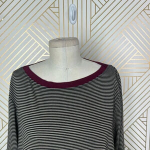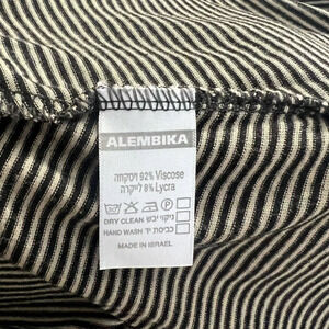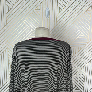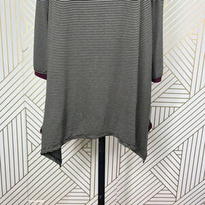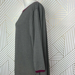 Alembika Tunic Top Blouse 3/4 Sleeve Striped Pullover Black Tan Size 2 US 8 10