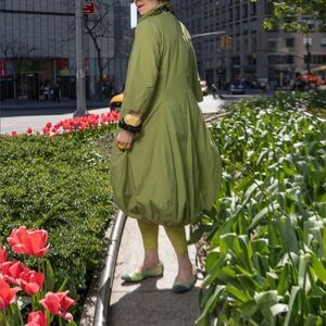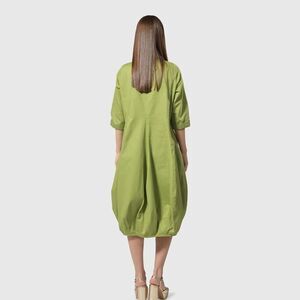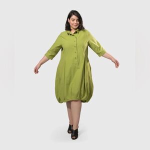 Cool, breathable woven cotton is rendered in the beloved Wonderful dress silhouette, shaped with princess seams and a breezy pouf skirt that has hidden elastic in the hem to hold its shape. Turn up the collar and stash something in the draped oversized pocket, the designer's signature. Effortless pullover with buttoned bodice.