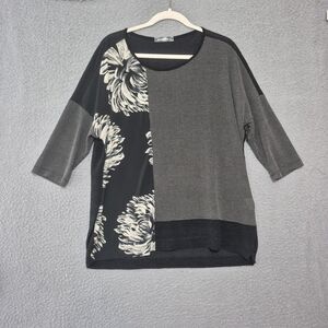 Alembika Women's Black Boxy Floral Art To Ware Tunic Top Medium