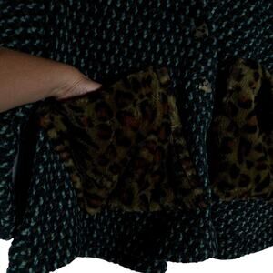 Alembika Womens Jacket XS Textured Wool Blend Leopard Faux Fur Pockets Boho Fit