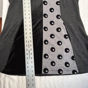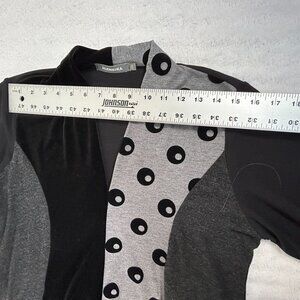 Alembika Womens Long Sleeve V-Neck Patchwork Tunic Top Blouse Size 2 Black Gray