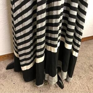 Alembika black cream gray striped v neck maxi dress size 5 or US 14-16