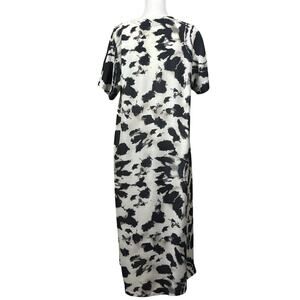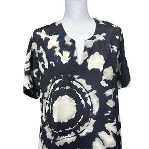 Black and ivory abstract tie-dye pattern with circular motif at front