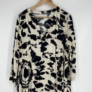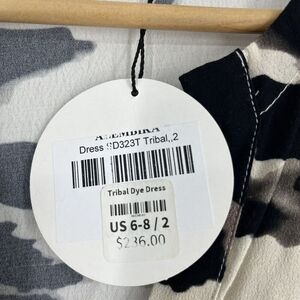 Alembika Dress Size 2 6-8 Black White Tribal Print 3/4 Sleeve V Neck Midi Shift
