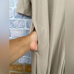 Khaki tan color oversized wide leg size 4 equals to XL / 1X USA size. Have pockets