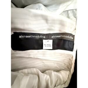 For sale is an amazing high quality women's Alena Akhumadllina made in Russia wool A line tailored skirt in a Russian sz 42 which is equivalent to a US 6. It is fully lined and has two side pockets. There is no content tag but this skirt is definitely made of a high quality wool material and has panels of a silk blend material mixed in.