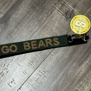 Keywords: Alena Dunn Designs, multicolor strap, beaded accents, detachable strap, women's fashion, collegiate theme, sports theme, handbag accessory, versatile styling, new with tags.