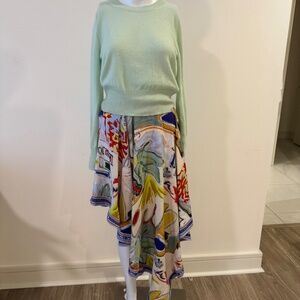 Brand new with tags! Beautiful printed asymmetrical skirt. This skirt runs more like a 00