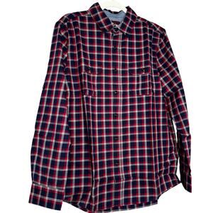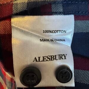 Alesbury Long Sleeve Button Up Shirt Navy Red Check Cotton NWT Size Medium