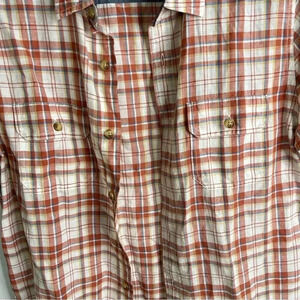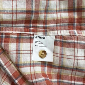 Preowned no obvious flaws, Alesbury slim fit Size Medium Shirt Linen Blend Multicolor Plaid Casual Button Front, two pockets.