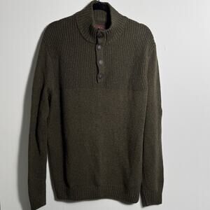Alesbury XL Men’s Sweater Green Donegal Fleck Shawl Collar 1/4 Button Wool Blend