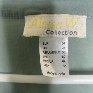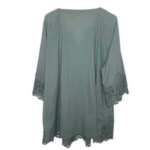 Alessa W. Collection Tunic Top Womens Size 22 Green Crochet Trim 3/4 Sleeves Boh