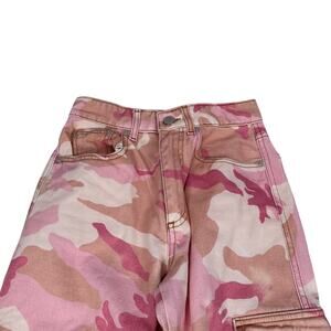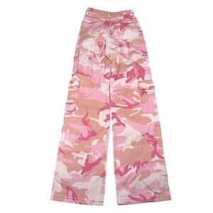Alessandra Rich Cargo Jeans Women’s 24 Pink Camouflage Cotton Gabardine Pockets