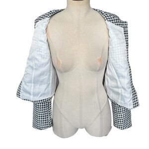 Houndstooth Jacket. Black and white cropped sequin houndstooth jacket from Alessandra Rich featuring a collarless design, a houndstooth pattern, a front button fastening, long sleeves, button cuffs, a cropped length and a sequin tweed.