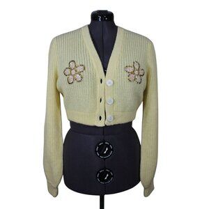 Alessandra Rich women's cropped embellished mohair blend cardigan sweater 36