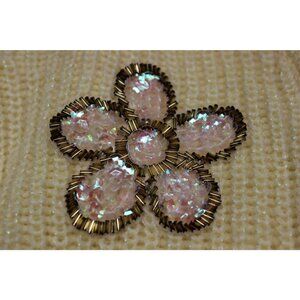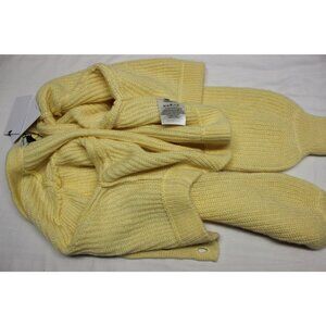 Fun, super soft plunge neck cardigan. Three pearlescent buttons, beaded embellishments on front. Metallic shimmer to knit. Stunning piece.